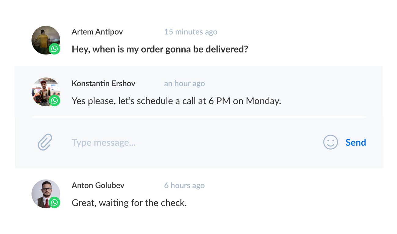 Quickley is the perfect place to organize the sales or support department work on WhatsApp. Communicate with customers in the messenger they love.